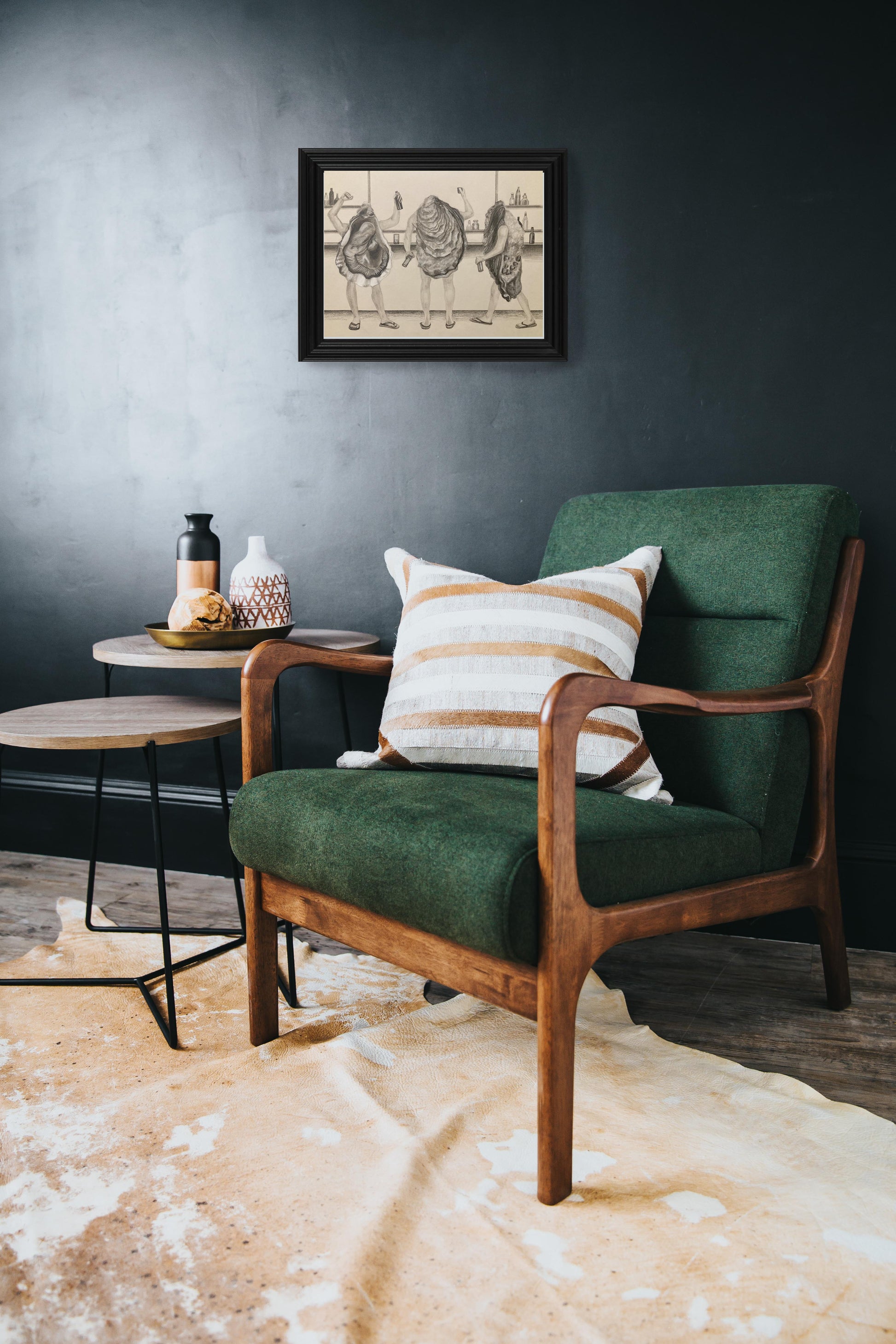 A witty and imaginative take on seaside culture, this art print celebrates humor, craftsmanship, and the joy of gathering—an ideal addition to any space that doesn’t mind a little shellfish humor.